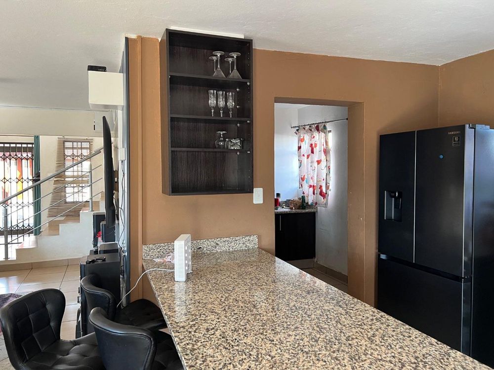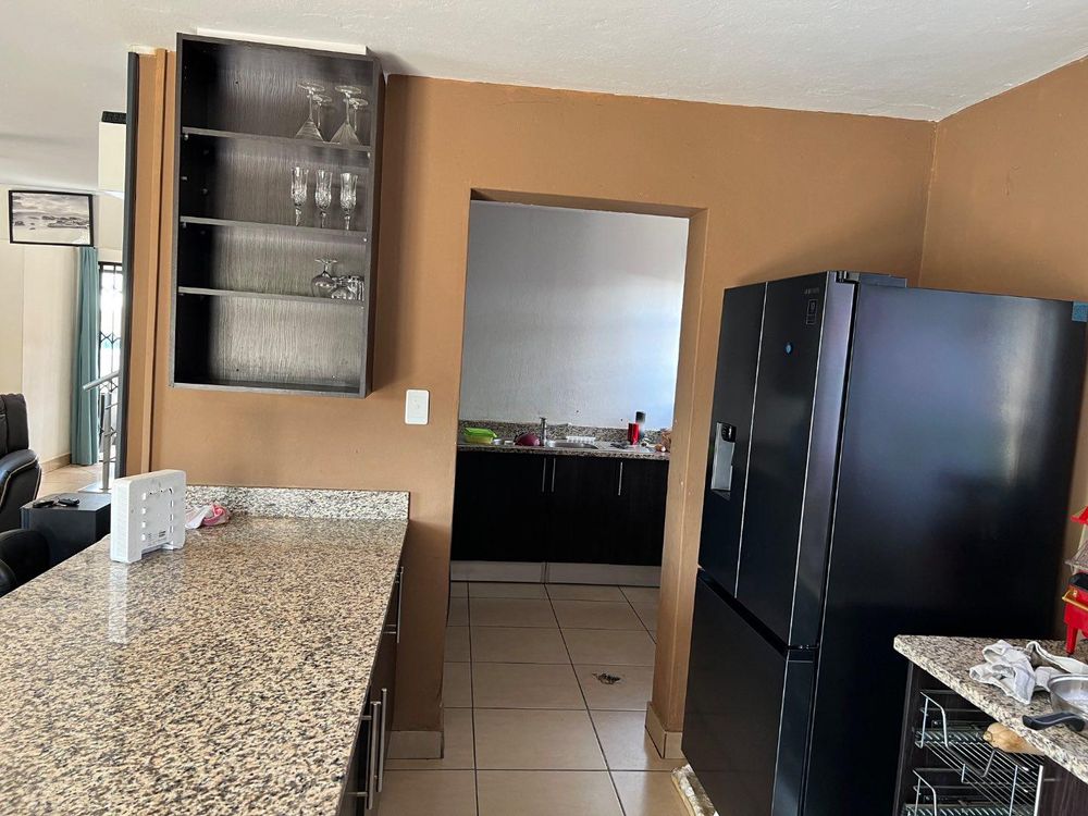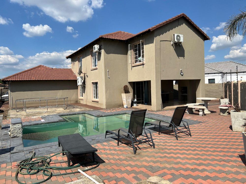 Experience tranquillity living in this large and spacious home that offers: the ground floor with open kitchen, living room plan and a lounge. Has storage, guest toilet, double garage, and lovely welcoming patio, find sparkling pool and braai place at the backyard.