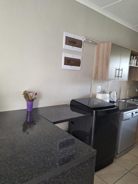 Entertain effortlessly in a secure estate near TUT campus, shops and schools, with a serene garden and dedicated braai area for family gatherings. Three bedrooms, two bathrooms, single garage.