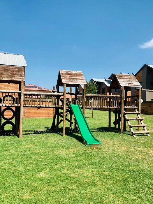 Three bedrooms, two bathrooms, 96 m², and two covered parking spaces in a secure complex with a play area.
